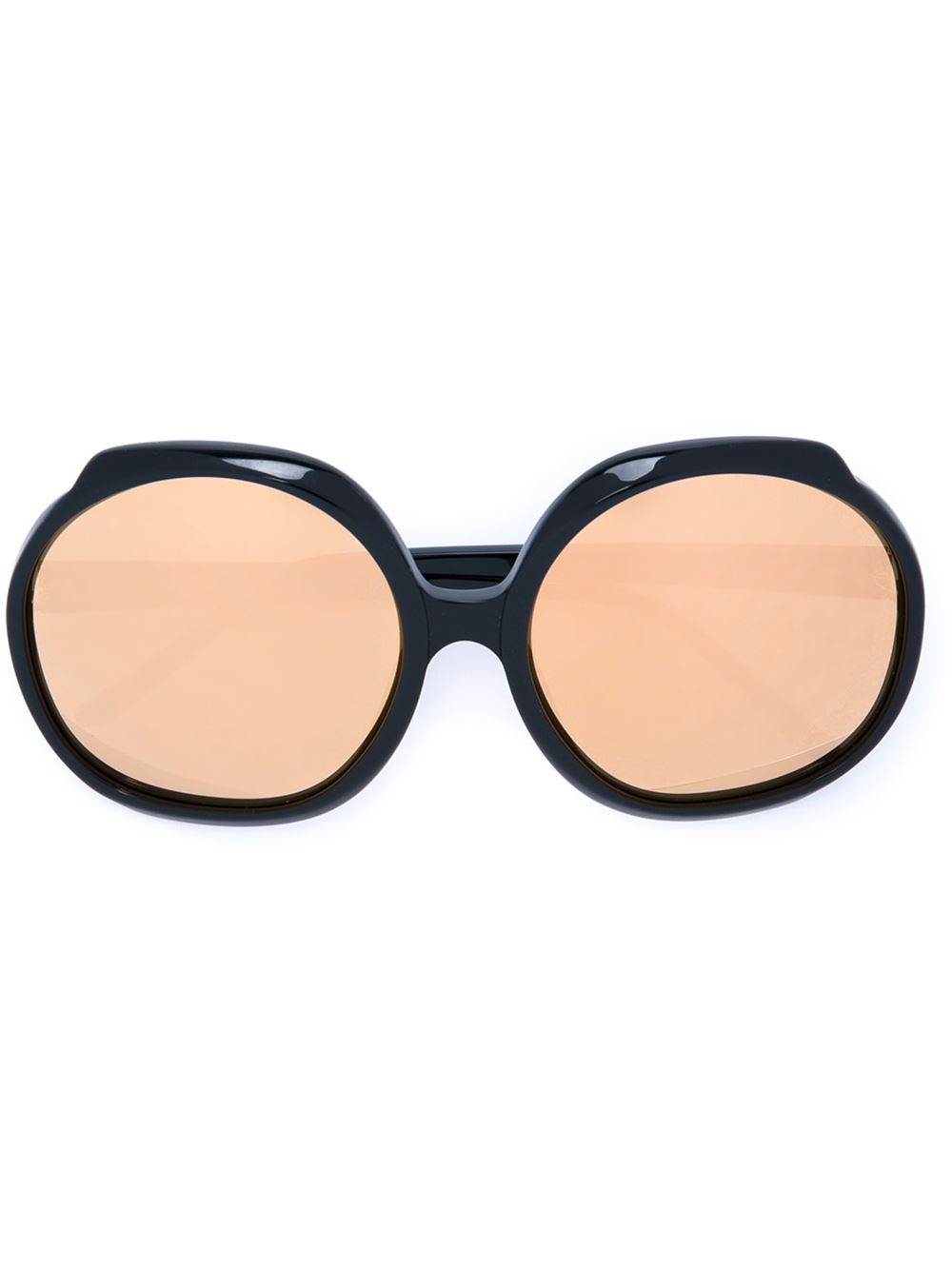 - Linda Farrow 黑色 醋酸纤维 椭圆形框太阳眼镜。 有色镜片, 金色五金配件, 弧角尾镜腿。请注意,这件商品附带保护壳。
