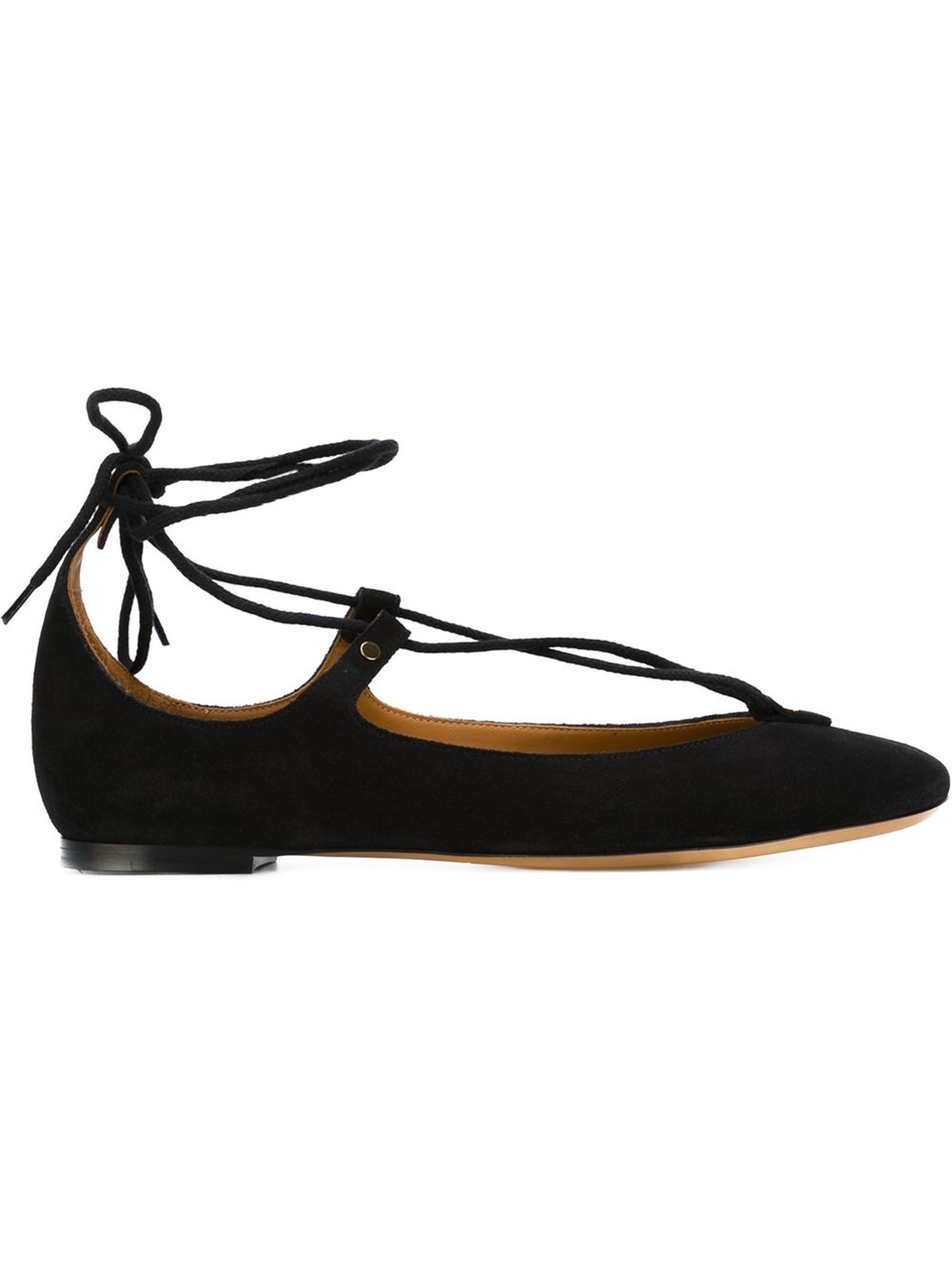 - Chloé 黑色 绒面皮 'Foster'芭蕾舞平底鞋。 圆头, 系带, 金色五金配件, 鞋垫饰有品牌标识, 平底。