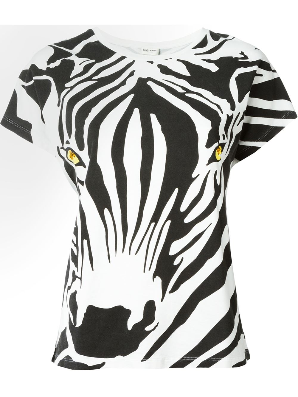- Saint Laurent 黑色与白色 全棉 斑马纹T恤。 圆领, 短袖, 宽松, 平直下摆, 亮片刺绣。