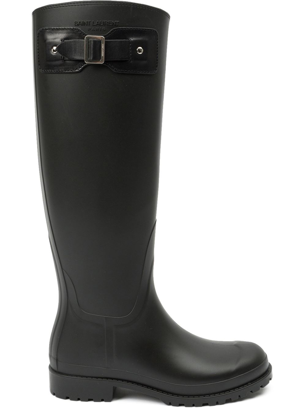 - Saint Laurent 黑色 小羊皮与橡胶 'Festival'及膝靴。 圆头, 穿套式, 饰扣子细节, 橡胶质平底。