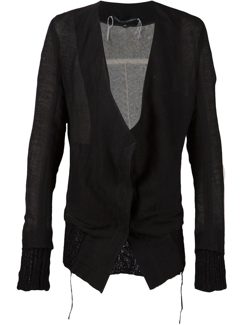 - Cedric Jacquemyn 黑色 羊毛与丝绸混纺 V领开衫。 暗扣, 长袖, 罗纹底边及袖口。