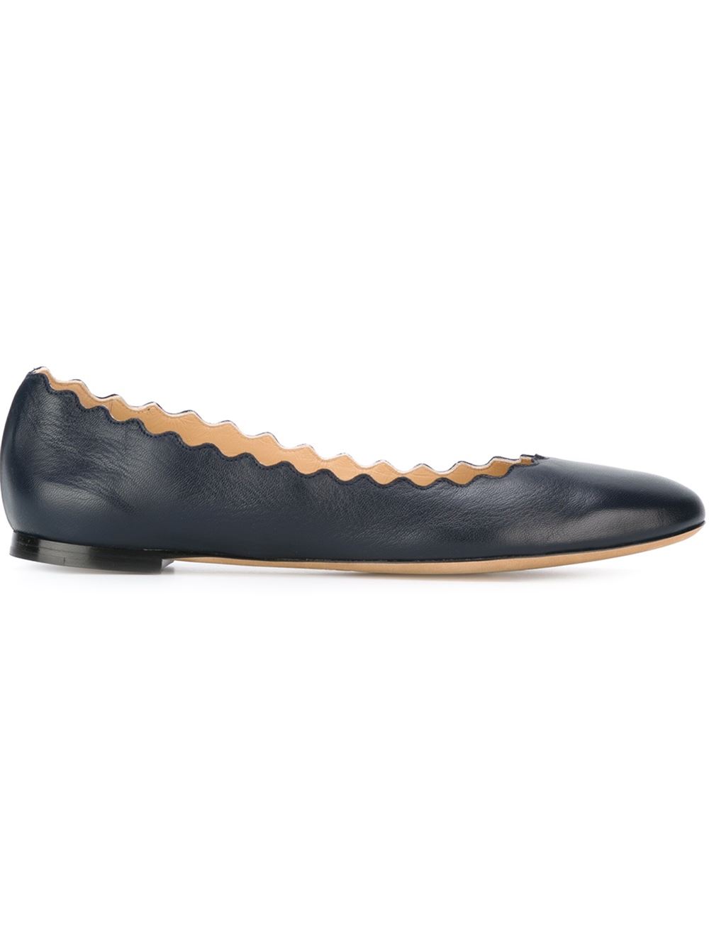- Chloé 蓝色 牛皮 'Lauren'芭蕾舞平底鞋。 圆头, 扇贝形细节, 鞋垫饰有品牌浮雕, 平底。
