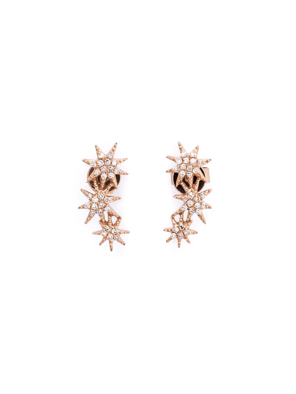 - SW/TCH 14k玫瑰金 三星钻石耳环。 钻石密镶, 蝴蝶钉扣, 星星造型。这件商品为双只耳环。