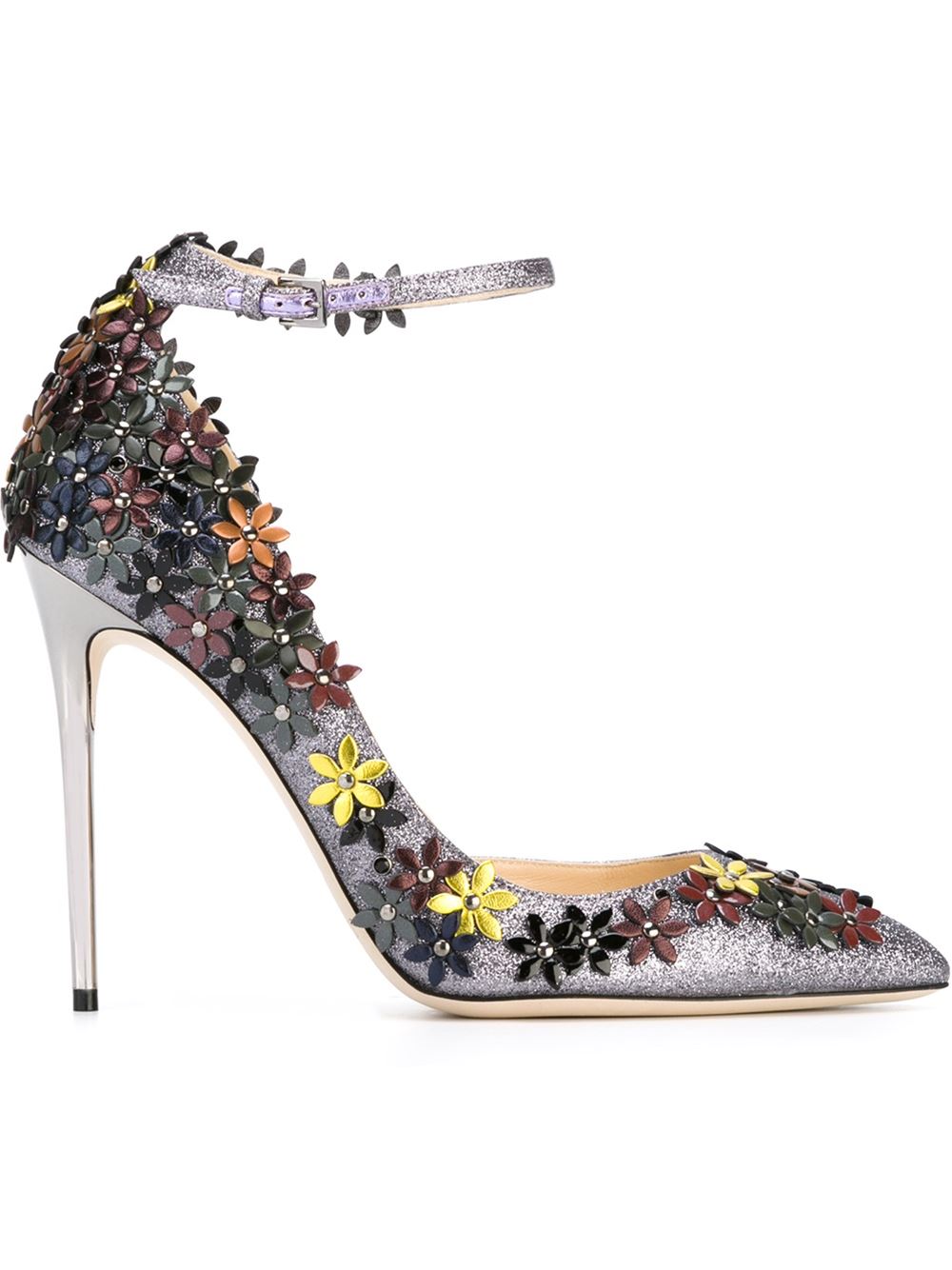 - Jimmy Choo 灰色 小牛皮 'Lorelai 110'高跟鞋。 尖头, 鞋垫饰有品牌浮雕, 搭扣踝带, 细高跟。