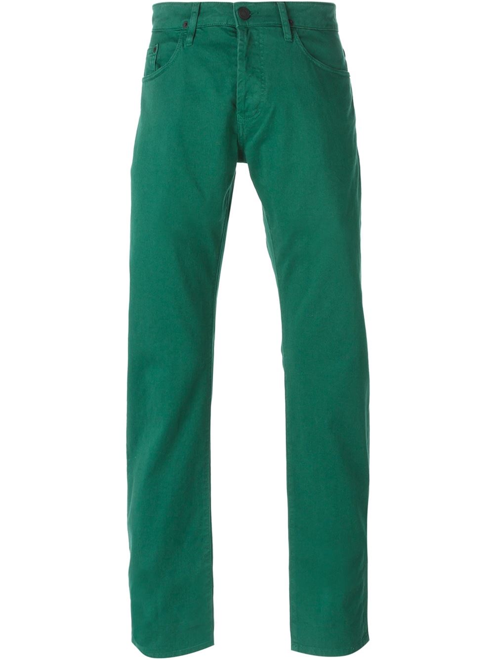 - Green stretch cotton straight leg jeans from Kenzo featuring a button and zip fly, belt loops and a five pocket design.