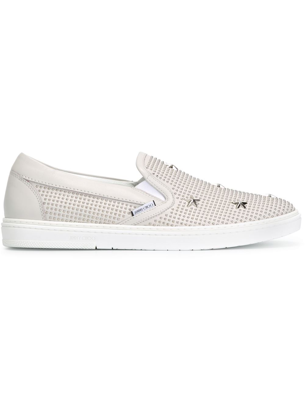 - Jimmy Choo 米白色 小牛皮 'Groove'无带板鞋。 圆头, 穿套式, 银色星星铆钉。
