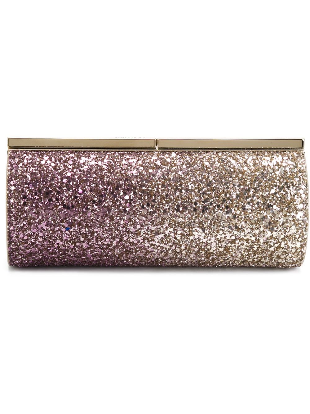 - Jimmy Choo 粉红色与金色 小羊皮 'Trinket'手拿包。 顶部有摁扣, 正面翻盖, 金葱胶细节。