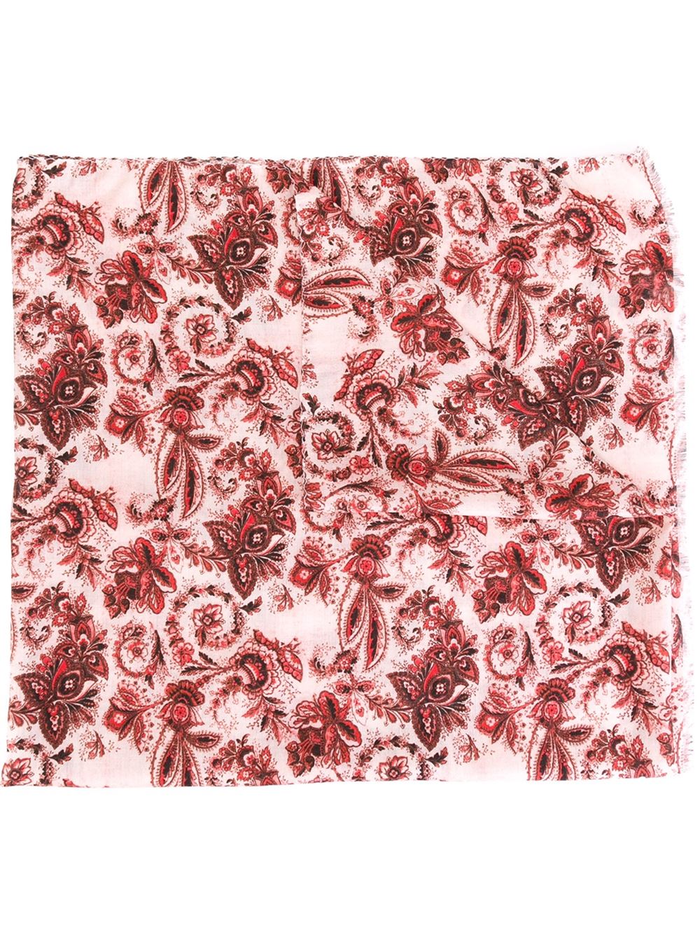 - Kiton 红色与粉红色 丝绸 花卉印花围巾。