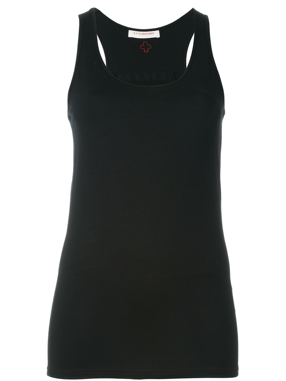 - A.F.Vandevorst 黑色 '161 Foil'马甲。 U字形领, 无袖设计, 修身。