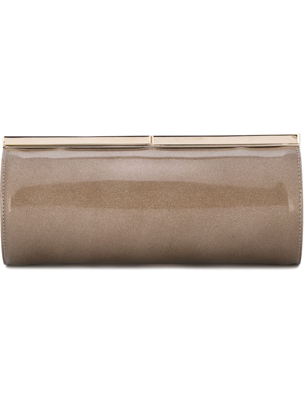 - Jimmy Choo 金沙色 牛皮 'Trink'手拿包。 金色五金配件, 顶置夹扣, 内置标贴。