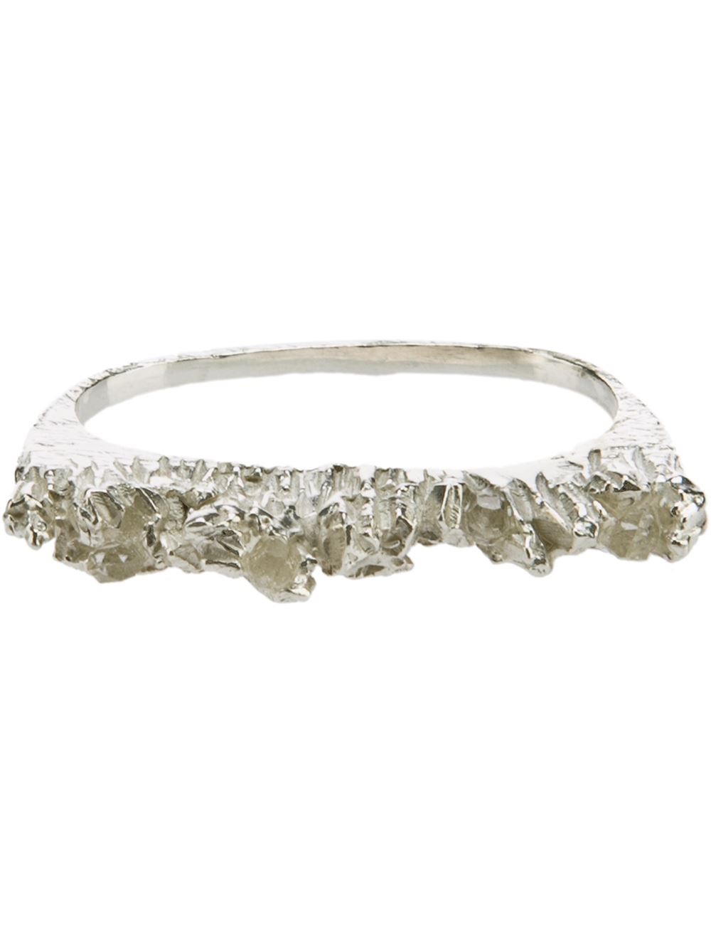 - Niza Huang 银色 纯银 'Under Earth'戒指。粗质感设计, 石英石镶嵌。英国伦敦制造。