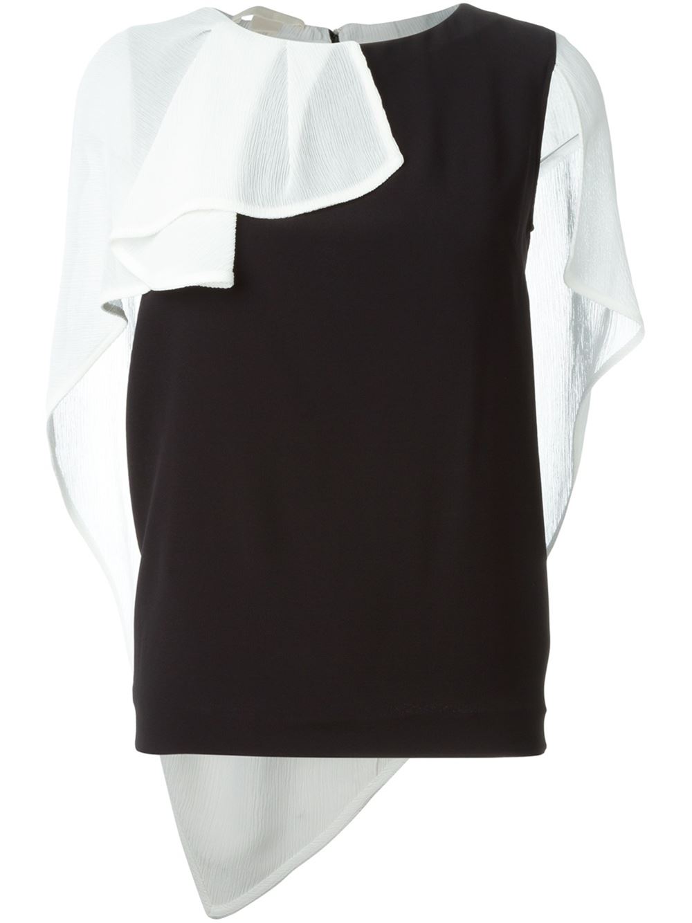 - Antonio Berardi 黑色与白色 垂褶披肩拼色坦克上衣。 荷叶边饰披肩, 短袖, 拼色设计。