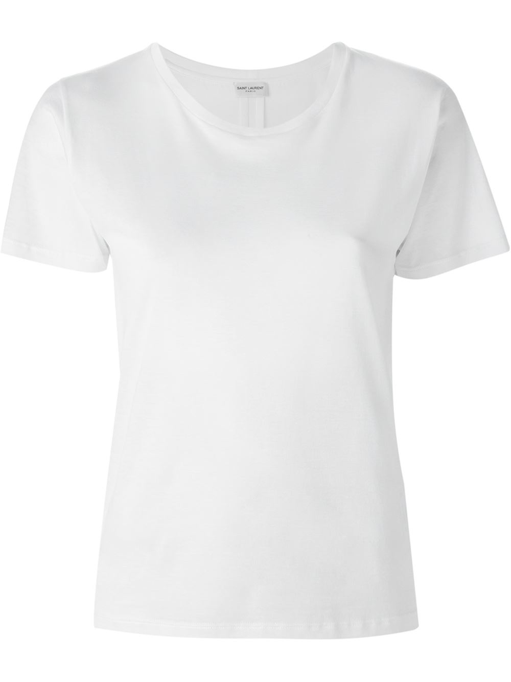 - Saint Laurent 白色 棉质 经典T恤。 圆领, 短袖, 平直下摆。