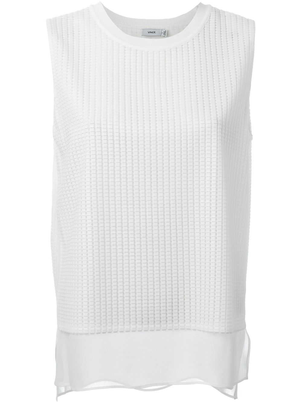 - Vince 白色 丝绸 叠层纹理坦克上衣。