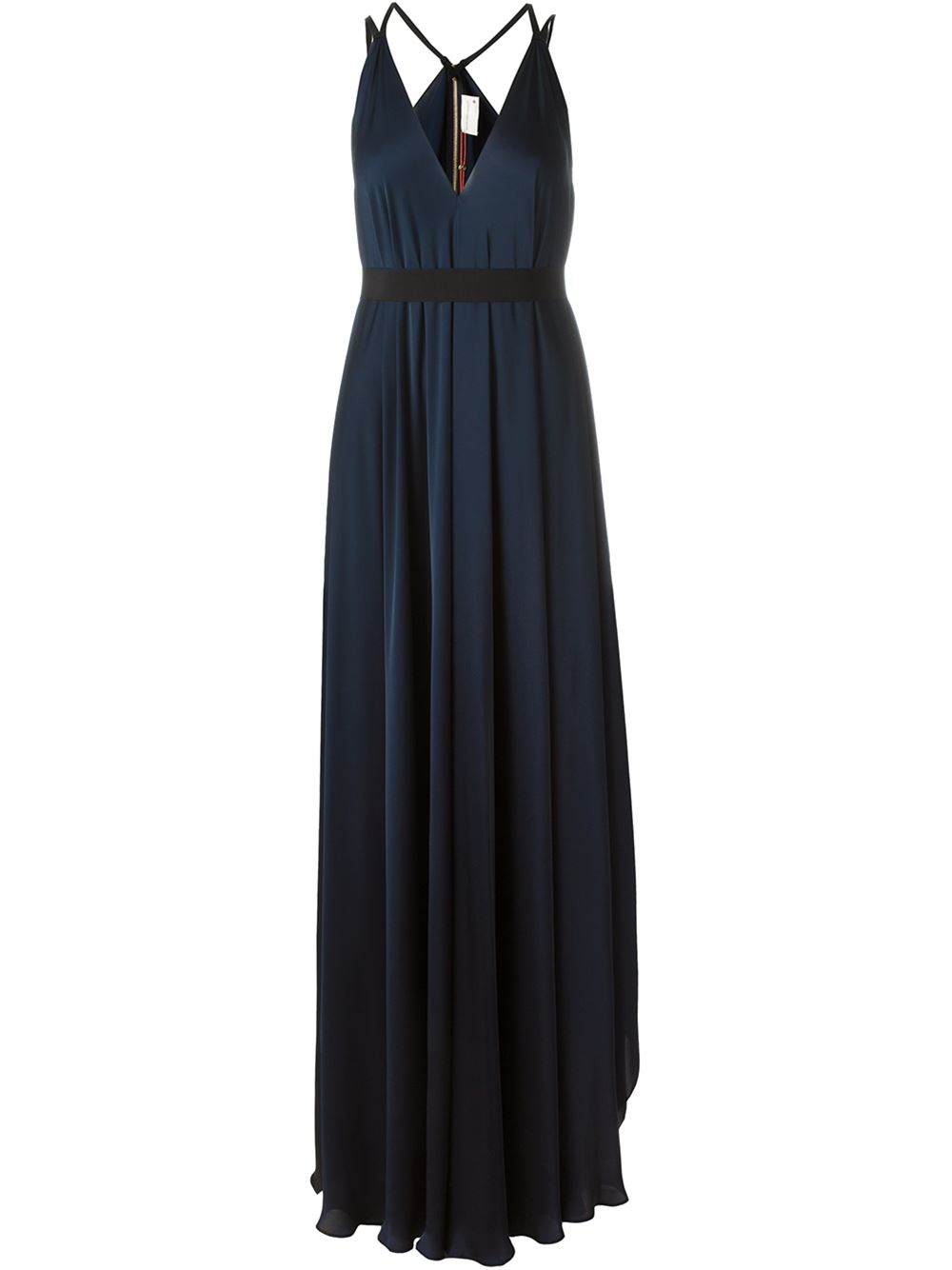 - Maison Rabih Kayrouz 海军蓝色 超长系腰带连衣裙。 V领, 挖剪细节, 后面有拉链, 系腰带设计, 百褶设计, 长款, 下摆不对称。这件商品尺码适中。