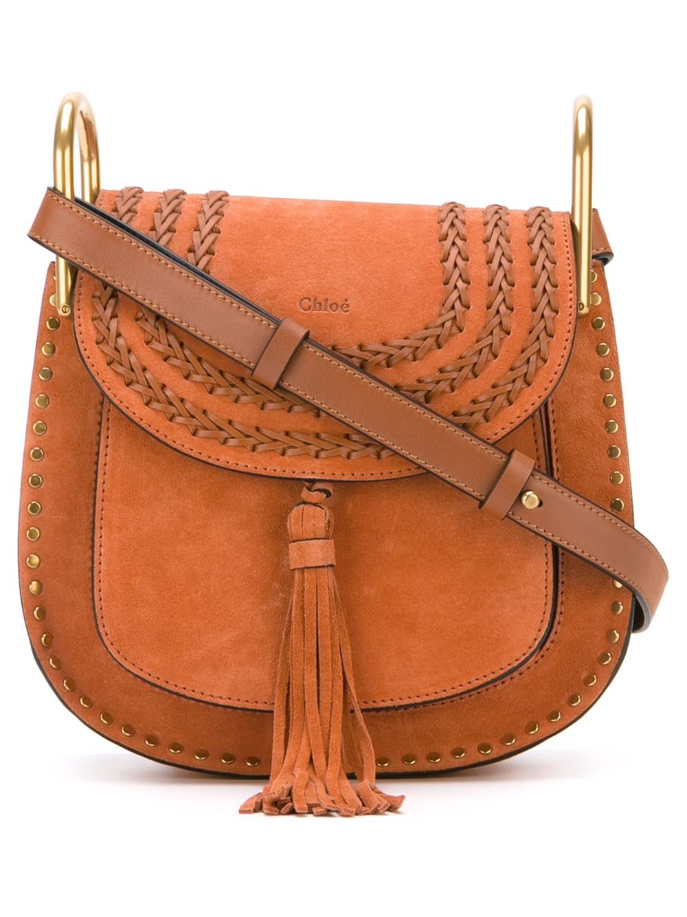 - Chloé 橙色 麂皮 'Hudson'小号单肩包。 翻盖饰有摁扣, 正中有品牌标记, 金色五金配件, 内置多个分层, 内置标签, 可调肩带。