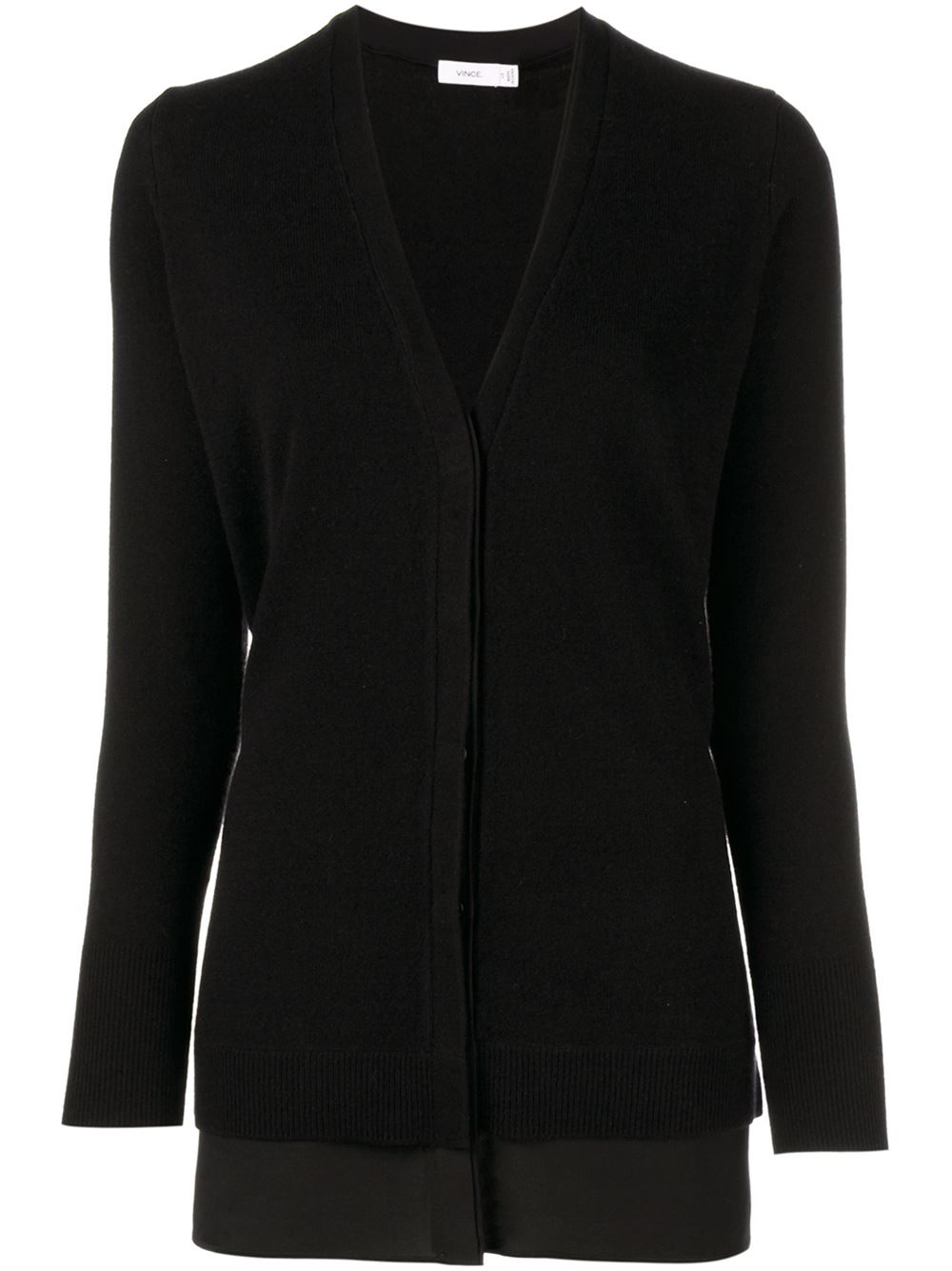- Vince 黑色 丝绸与羊绒羊毛混纺 拼接开衫。