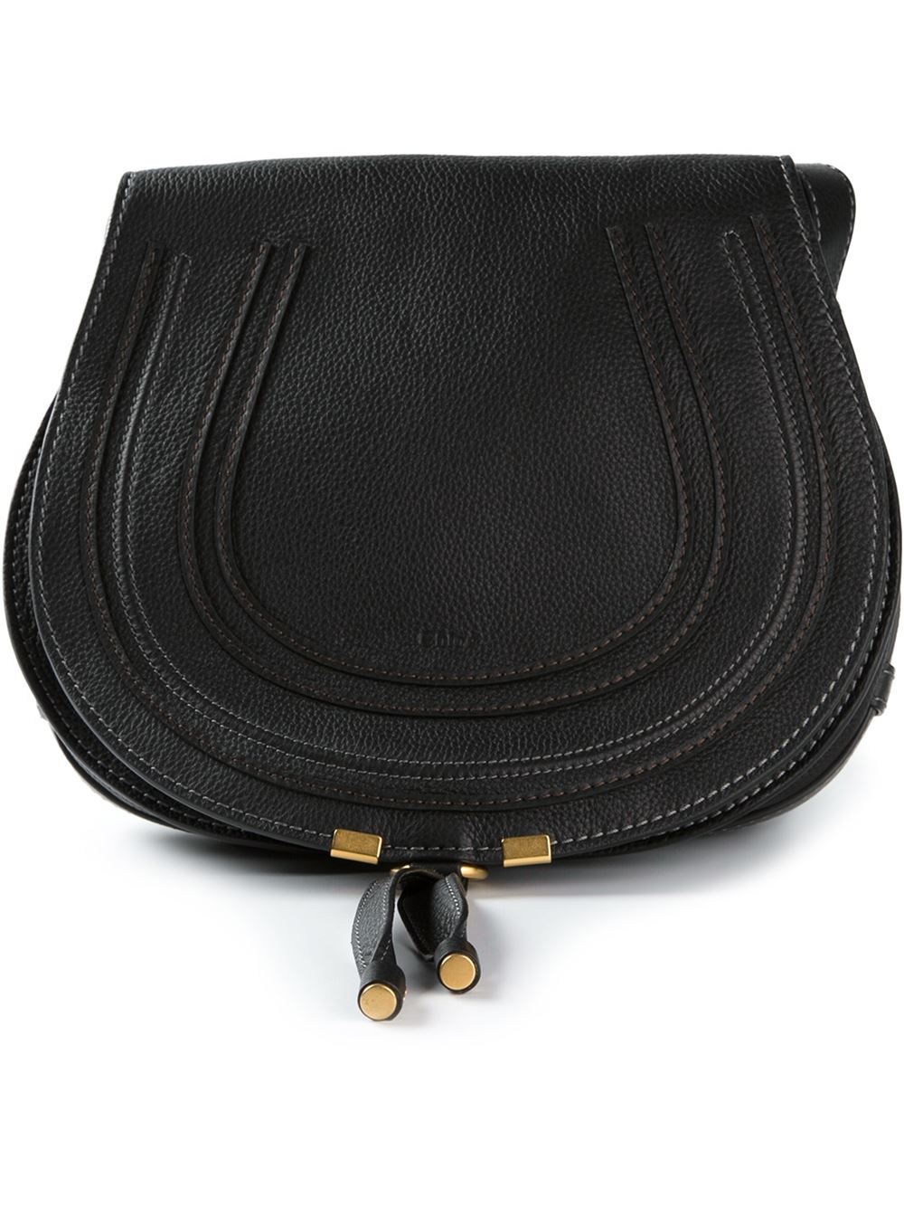 - Chloé 黑色 小牛皮 'Marcie'大号斜挎包。 可调肩带, 正面有翻盖, 浮雕标志, 缝合细节, 金色五金配件, 内置贴袋。