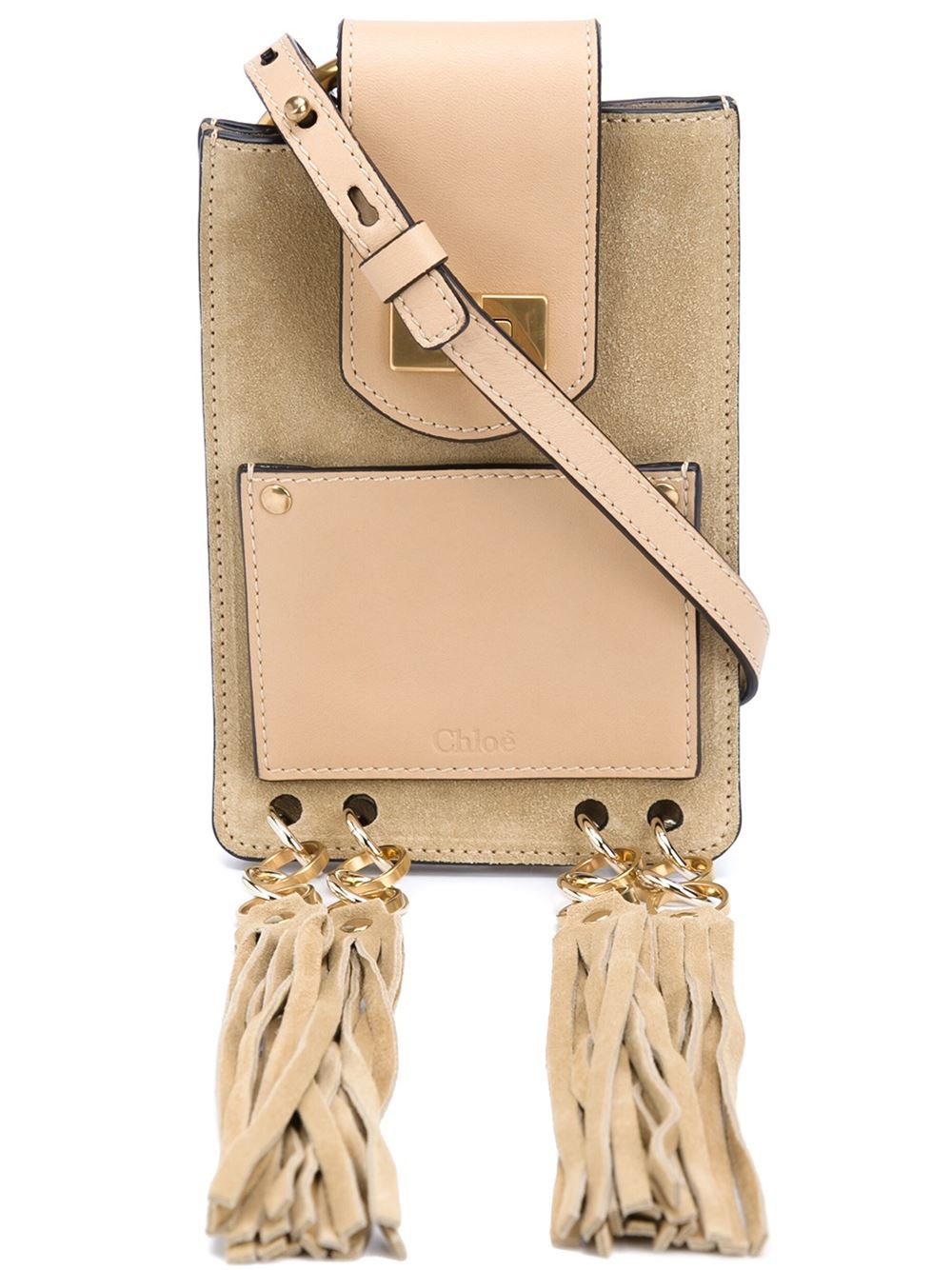 - Chloé 珍珠米色 牛皮与绒面皮 'Jane'迷你单肩包。 顶部饰有翻盖, 金色旋扣, 正面有贴袋, 正面饰有浮雕品牌标记, 流苏细节, 可拆卸可调肩带, 内置标贴, 内置贴袋, 绒面皮衬里。