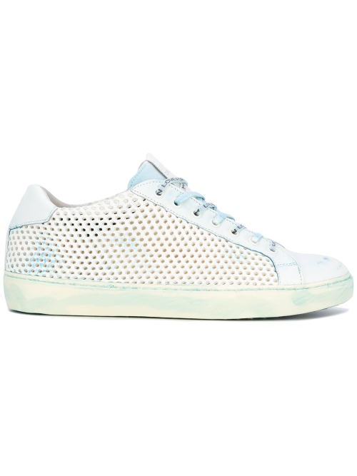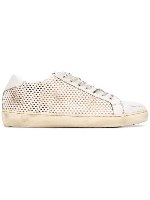 Leather Crown destroyed effect perforated sneakers
