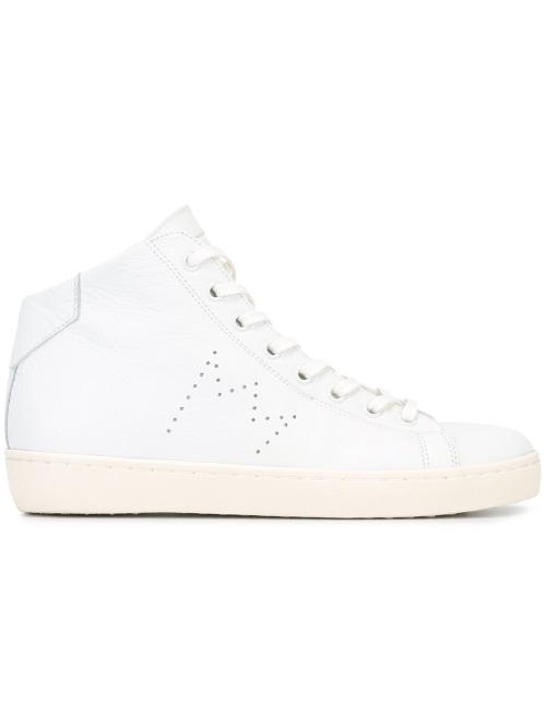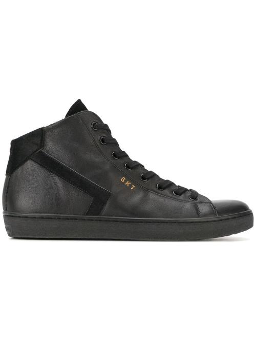 Leather Crown metallic hi-top sneakers