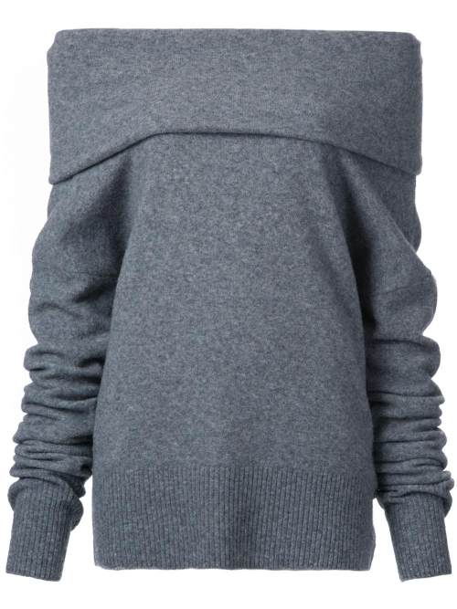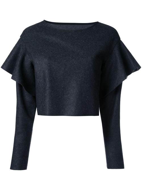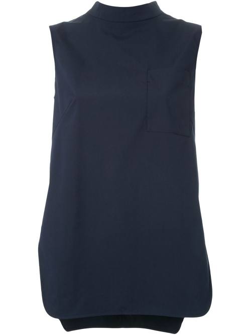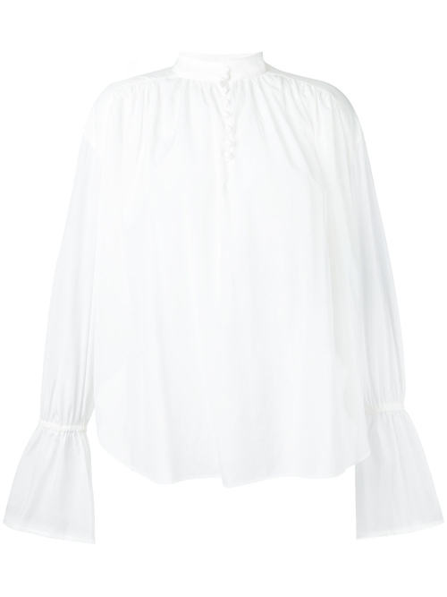 Le Ciel Bleu 搭扣直领缩褶肩罩衫