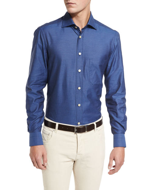 Kiton Piqué Long-Sleeve Button-Front Shirt, Pink