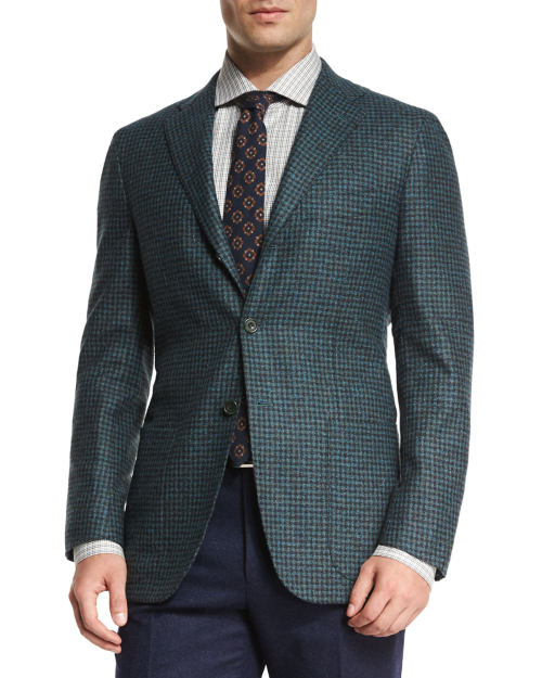 Kiton Check Long-Sleeve Sport Shirt, Green/Blue