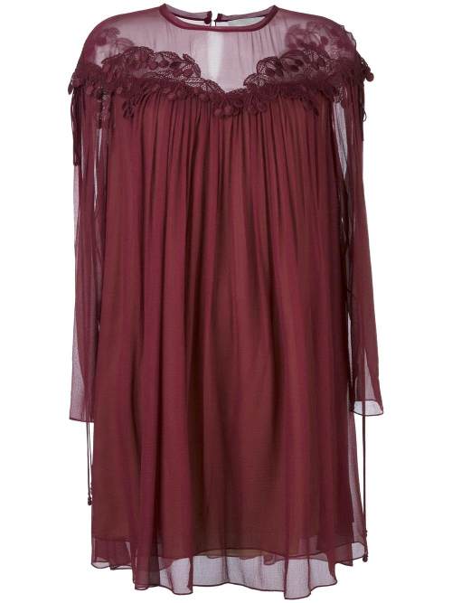 Chloé Off-The-Shoulder Contrast-Hem Dress, Navy