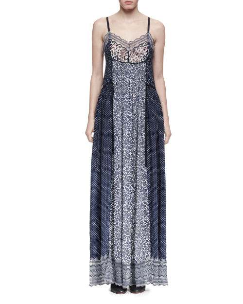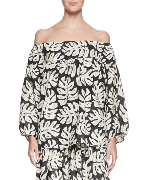 Chloé Palm-Print Off-the-Shoulder Blouse, White/Black