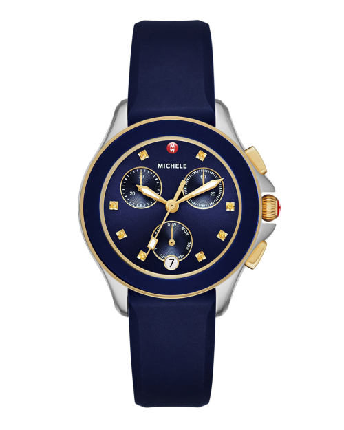 MICHELE Cape Two-Tone Chronograph Watch w/Silicone Strap, Navy