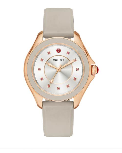 MICHELE Cape Topaz Watch w/Silicone Strap, Taupe