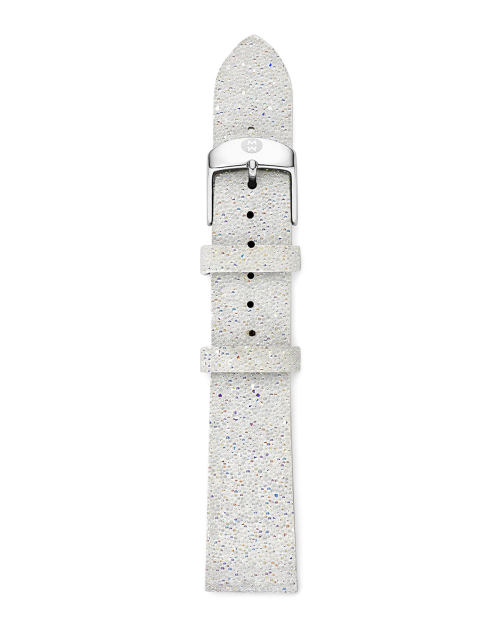 MICHELE 16mm Crystal-Covered Leather Strap, White