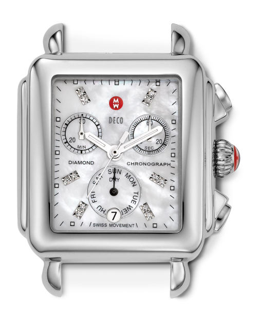 MICHELE 18mm Deco Diamond Swan Watch Head in Stainless Steel