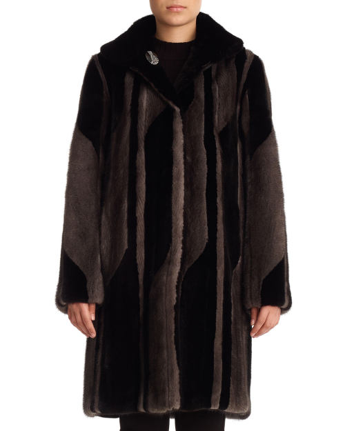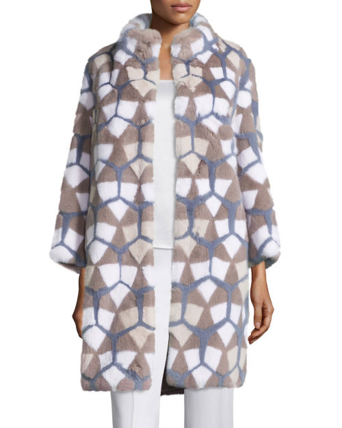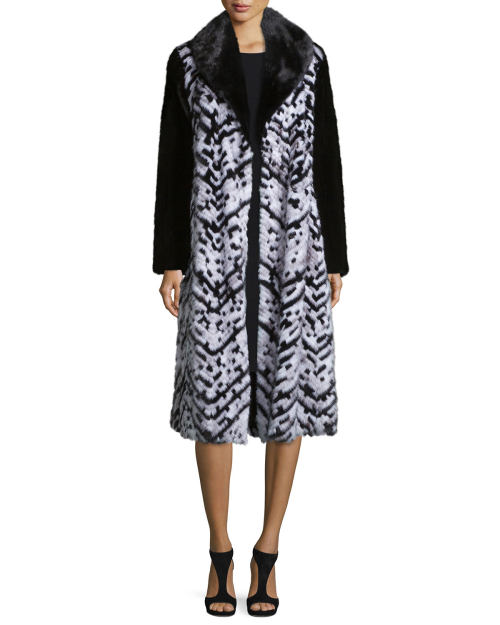 Gorski Horizontal-Striped Mink Fur Long Coat