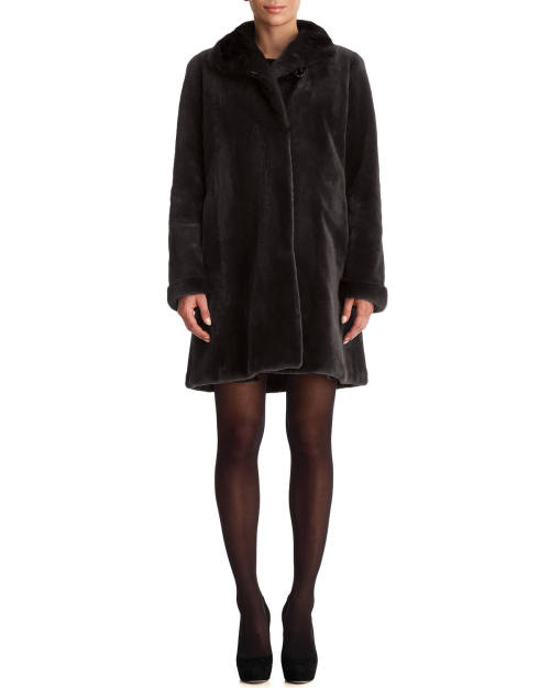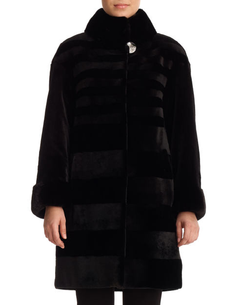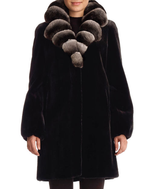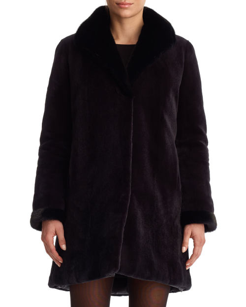 Gorski Reversible Mink Groove-Inset Stroller Coat, Black