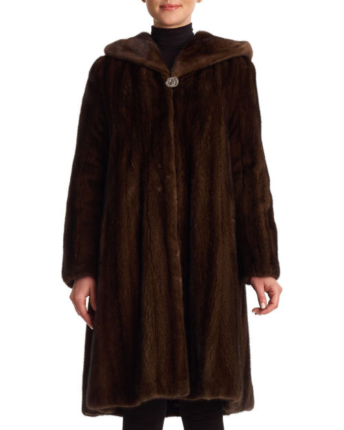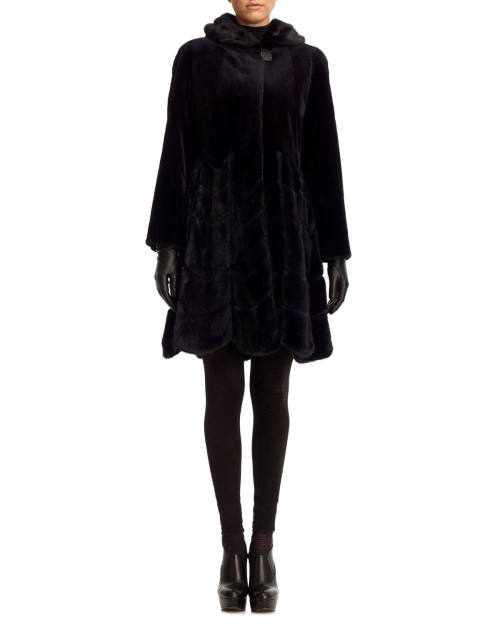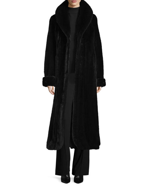 Gorski Sheared-Mink Hooded Long Coat, Black