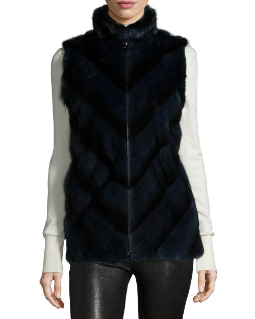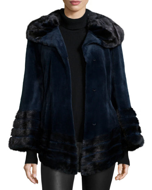 Gorski Reversible Mink Stroller Coat, Midnight Blue
