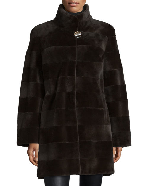 Gorski Mink Stand-Collar Stroller Coat, Black