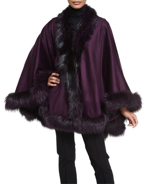 Gorski Cashmere Cape with Fox Fur Trim, Aubergine