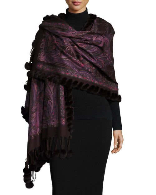 Gorski Rabbit-Trim Paisley Cashmere Stole