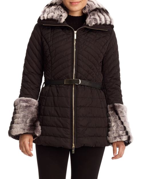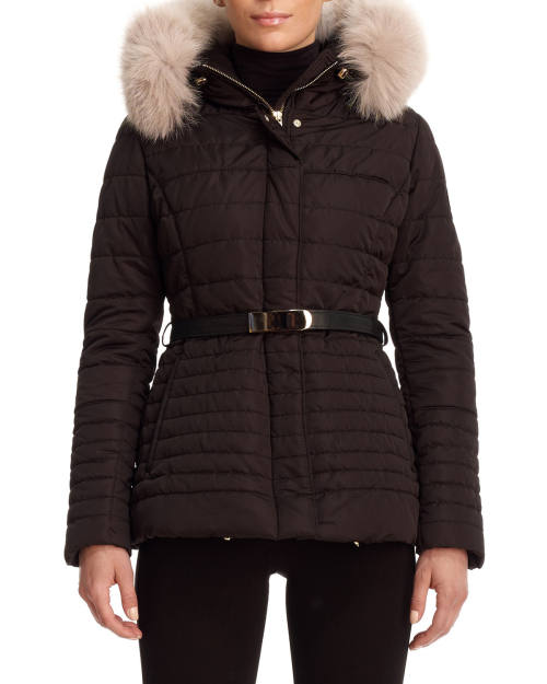 Gorski Aprés-Ski Rabbit-Trim Belted Jacket, Black