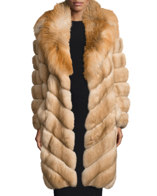Gorski Fox-Collar Sable-Fur Coat, Tan