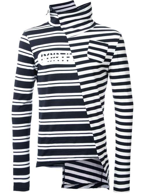 Maison Mihara Yasuhiro striped asymmetric collar T-shirt
