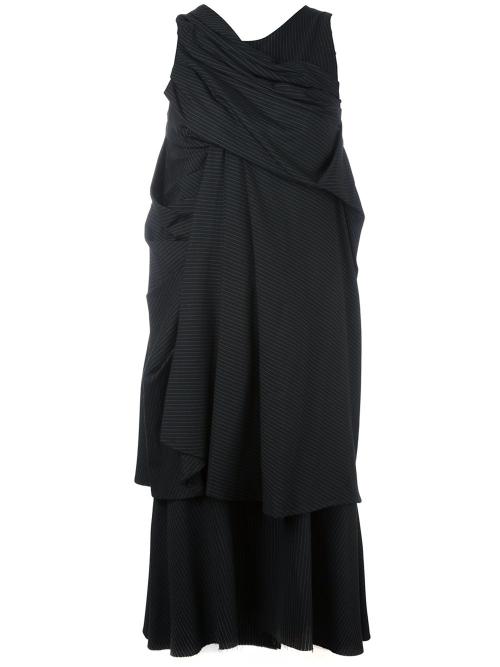 A Tentative Atelier 细条纹垂坠叠层连衣裙