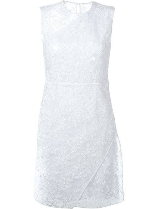 Carven Long-Sleeve Eyelet Sheath Dress, Optic White