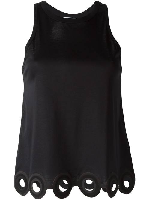Carven Sleeveless Crepe Lace-Trim Mini Dress, Black