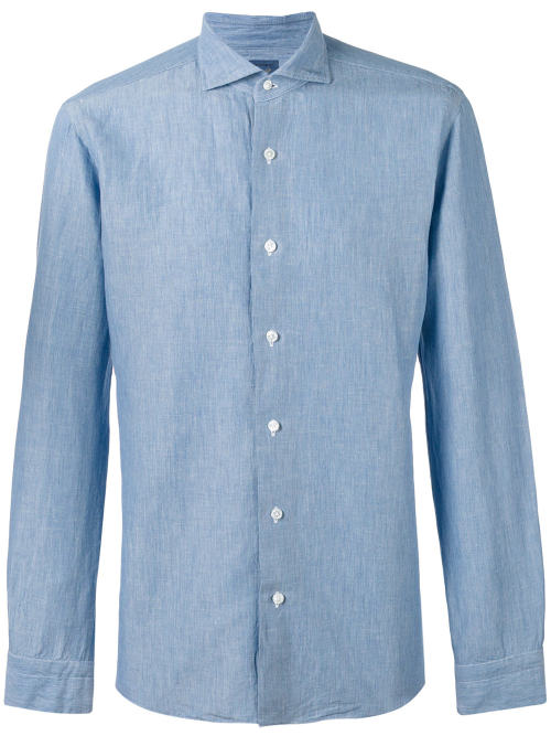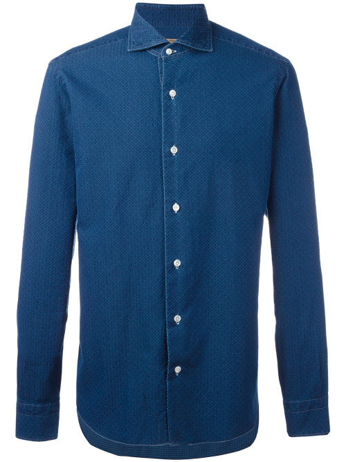 Barba男士衬衫运用六十年代的圆点印花来为经典搭配注入更多复古气质。经典的丹宁色调也更加凸显了这一气质。