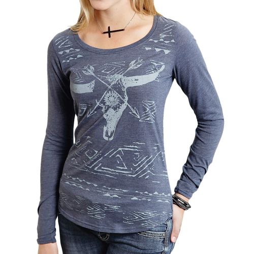 Tin Haul Roper Skull Scoop Neck T-Shirt - Long Sleeve (For Women)