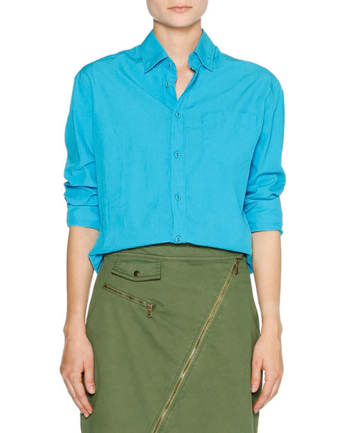 Tomas Maier Boyfriend-Fit Cotton Blouse, Azur